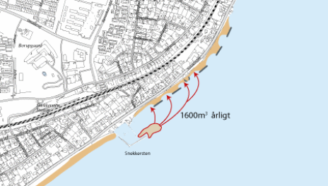 Det sand der allerede graves væk ved havneindløbet skal pumpes som sandfodring til nord for havnen i stedet for at det klappes 0,5-1 sømil ude i Øresund, for dernæst i sæsonen igen at lægge sig i havneindløbet. Der tales om ca 14-1600 m3 årlig, og hvorfor ikke bruge det til kystsikring.